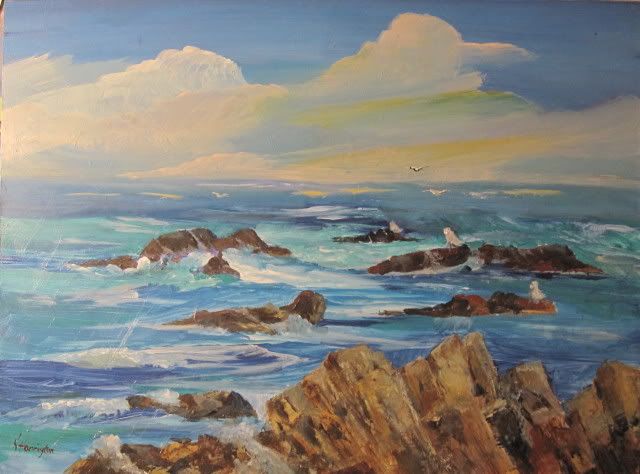 This is painted in artists acrylics on hardboard. It is shown in a virtual mat. This painting is a standard 9x12" and about a quarter of an inch thick.